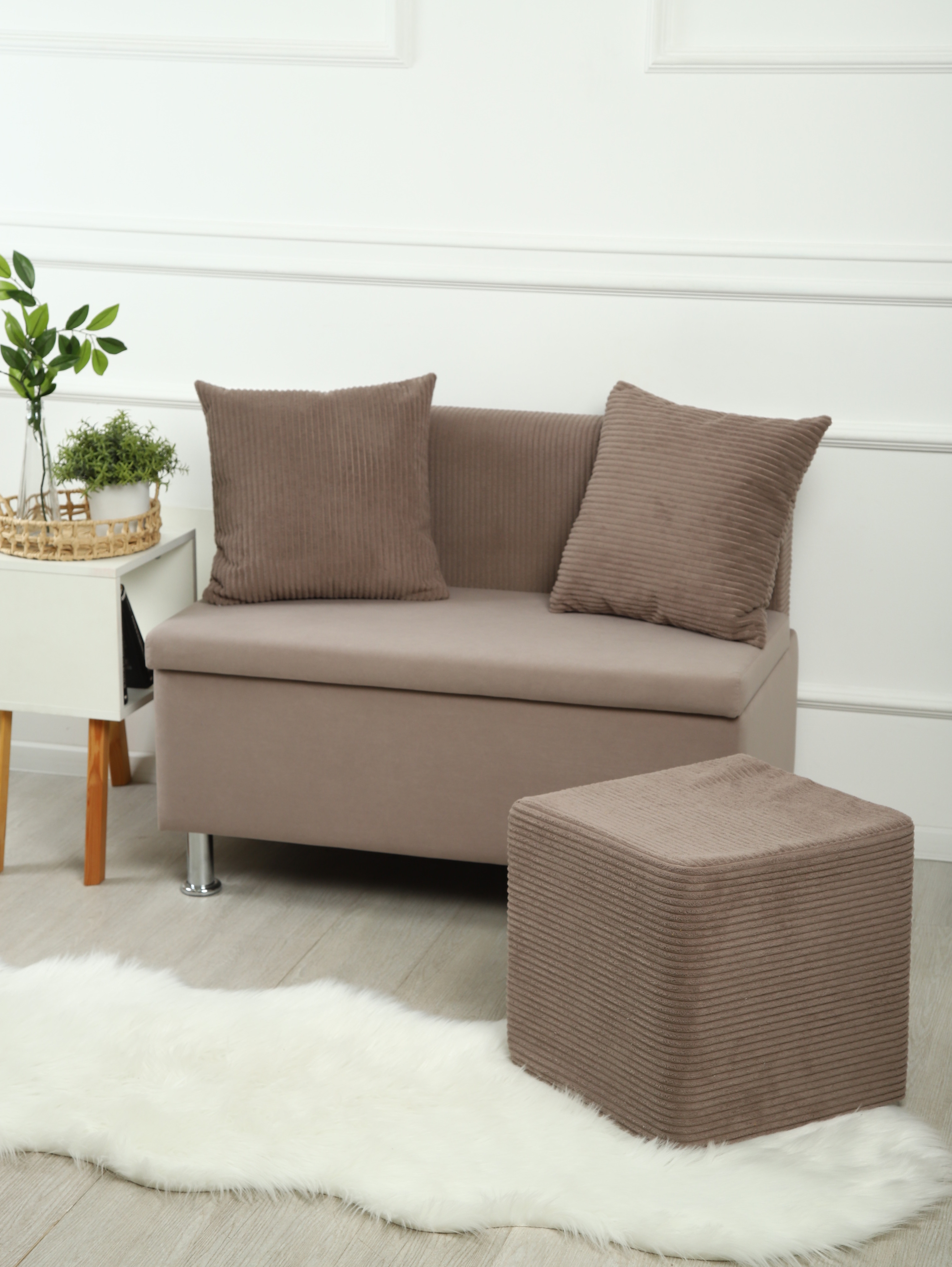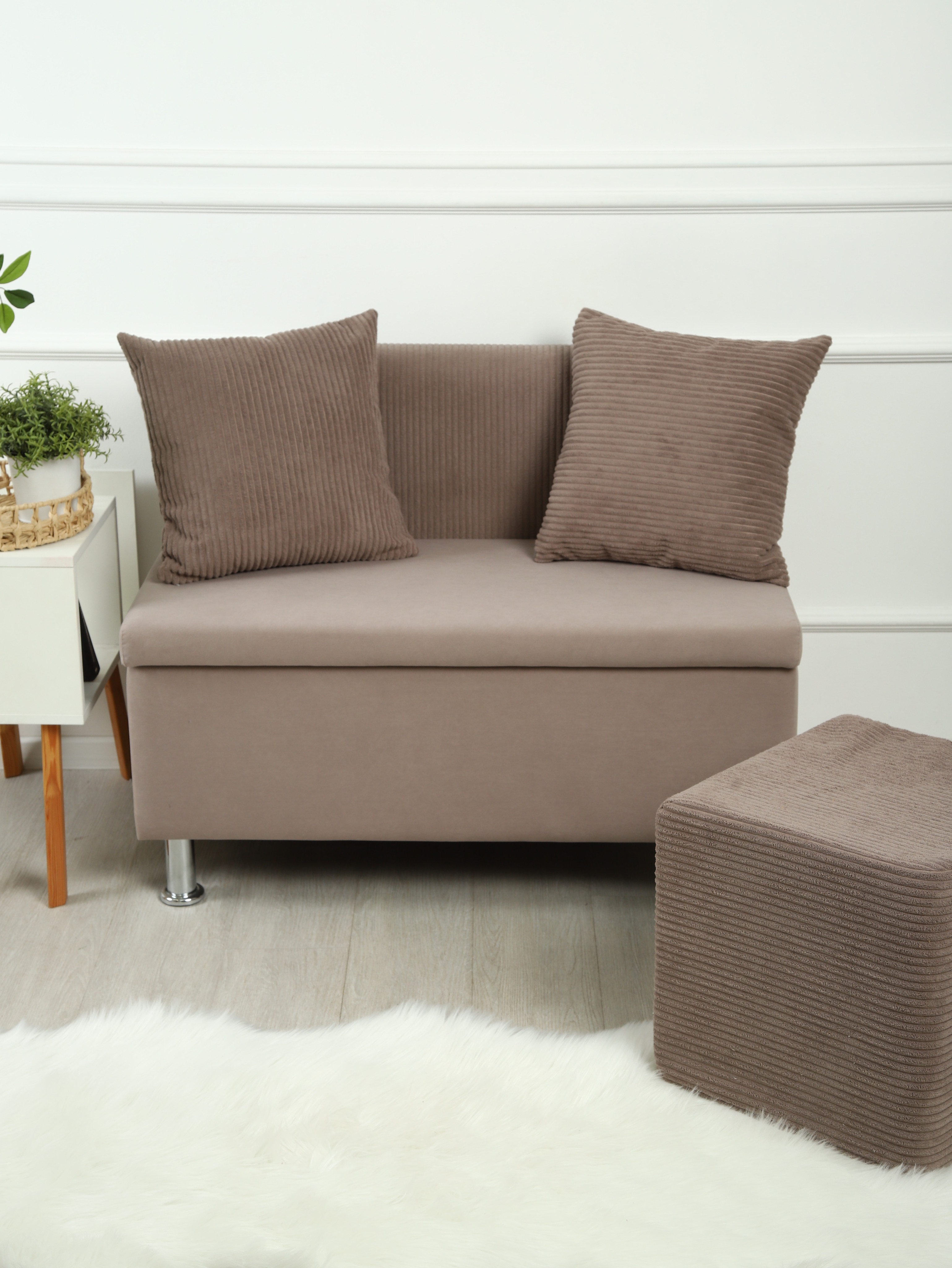 Лаконичные линии и простые формы, безупречный стиль и индивидуальность. Компактный диван Mini отличается своей функциональностью. Его вместительный ящик позволяет хранить различные предметы, что значительно экономит пространство вашего помещения. Полностью выполнен в одной ткани. Диван из антивандального велюра, можно мыть мыльным раствором, легкий уход и износостойкость. Ткань не подвержена выгоранию и устойчива к истиранию. Компактные размеры позволяют гармонично разместить в пространстве любого размера. Диван Mini может стать ярким акцентом для кухни, просторной гостиной, офиса, прихожей, салона красоты, детской, балкона или веранды и не займет много места. Также, компактность дает возможность легко перемещать его и менять настроение интерьера. Отличный подарок маме, папе, жене, мужу, любимой, любимому, бабушке, дедушке, любой женщине или мужчине на день рождения, на новоселье, на юбилей, на 8 марта и 23 февраля. Компактные размеры позволяют гармонично разместить в пространстве любого размера. Диван поставляется в одной удобной коробке, что упрощает его транспортировку и хранение. Благодаря простой и легкой сборке, вы сможете быстро и без проблем собрать его самостоятельно.