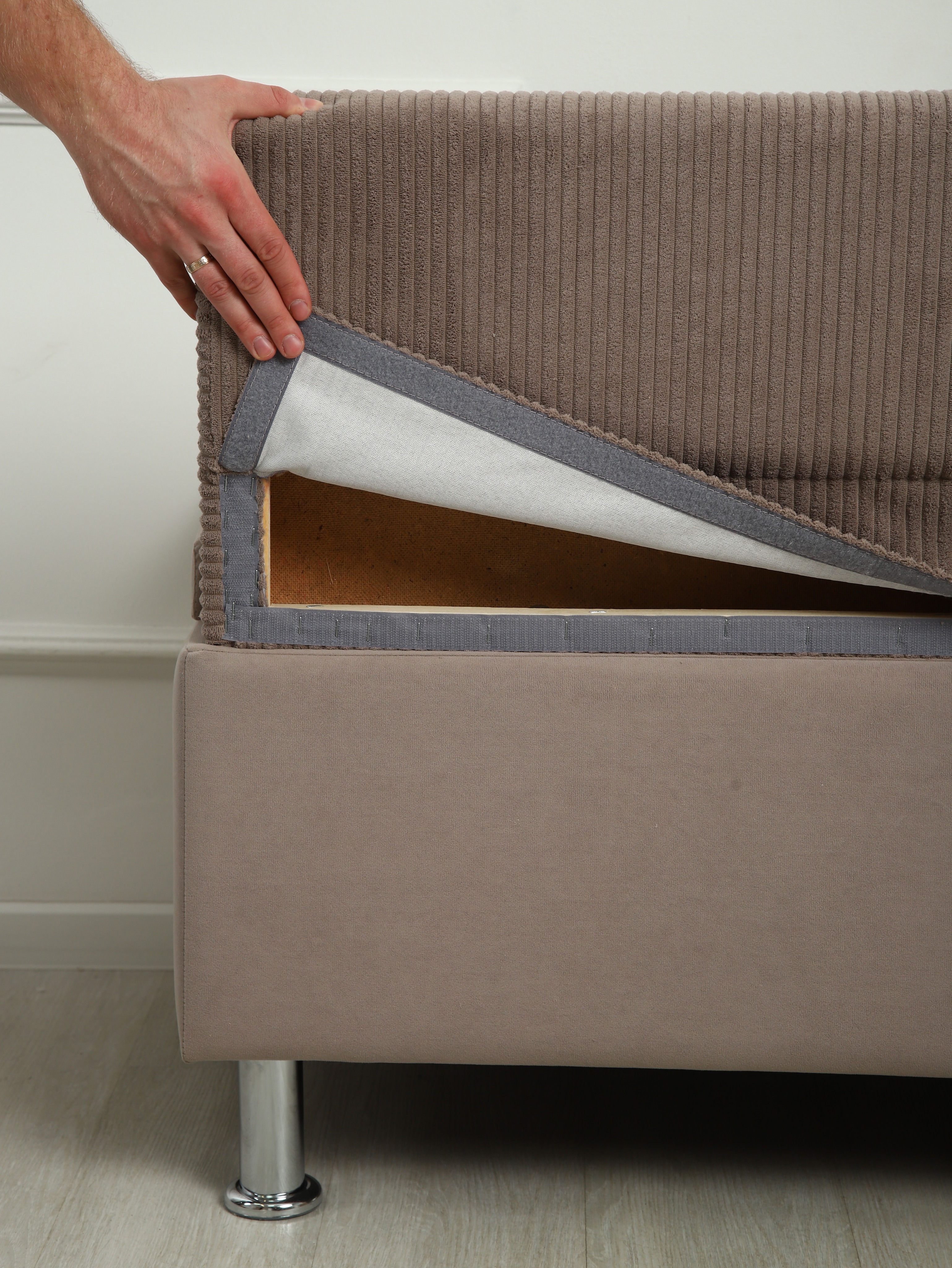 Спинка и ножки находятся внутри сиденья, диван поставляется в одной коробке!